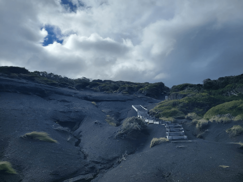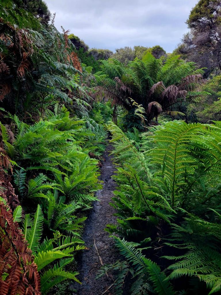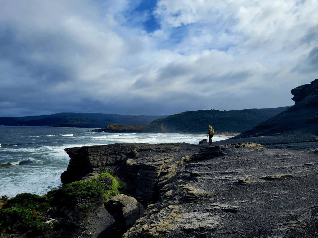 One last climb up a muddy hill from this week’s rain, fighting our way through thick ferns and gnarly tree branches – and there it was: South Cape Bay. Better known as the southernmost point of Australia. Its cliffs surprisingly black and hostile and barren. The panorama a breathtaking view of the Southern Ocean. Wild and dark and strong. Welcome to another Edge of the World. (Antartica was next)